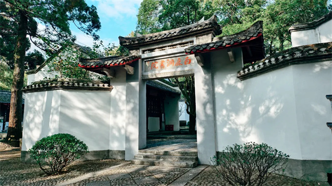 第二站,白鹿書院——是世界上最早的大學,距今已有千年歷史。古木參天、灰瓦方墻、臺榭樓宇無不引人入勝。舉目遠眺,幽深的古洞、攀緣的古藤、蒼翠的松竹,都能將人帶到古老的文化之中,切身感受那文人墨客的古韻。
