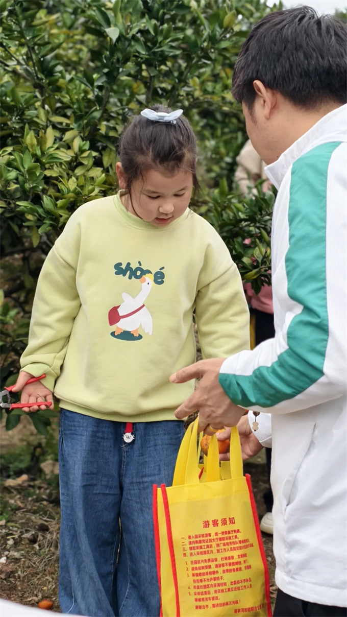 伴隨著微風,業盛堂人穿梭在田間果園,一邊欣賞田園風光,一邊將一顆顆金黃的橘子摘下放入袋中。忙碌采摘的身影,歡樂的笑聲,與果園的綠葉、果實交織在一起,為果園增添了無限生機,大家也收獲了一袋袋豐碩的“勞動成果”。